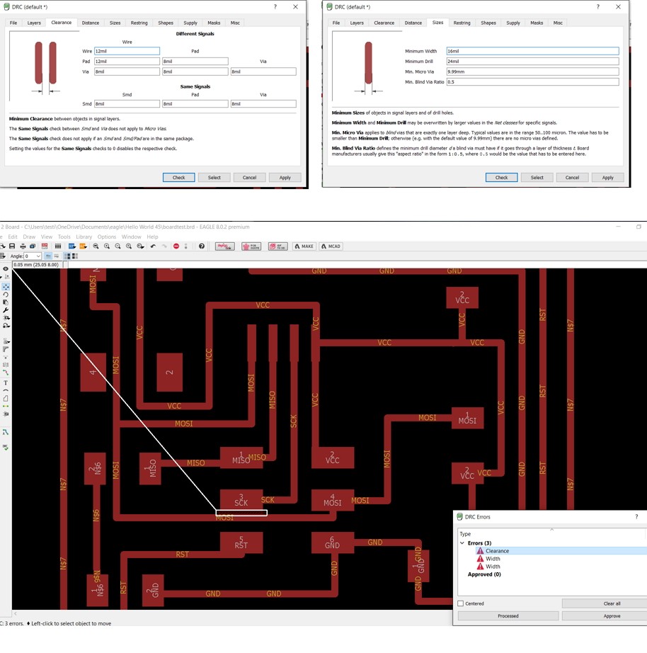 And DRC function where you are able to check your tracks after routing for clearance issues.