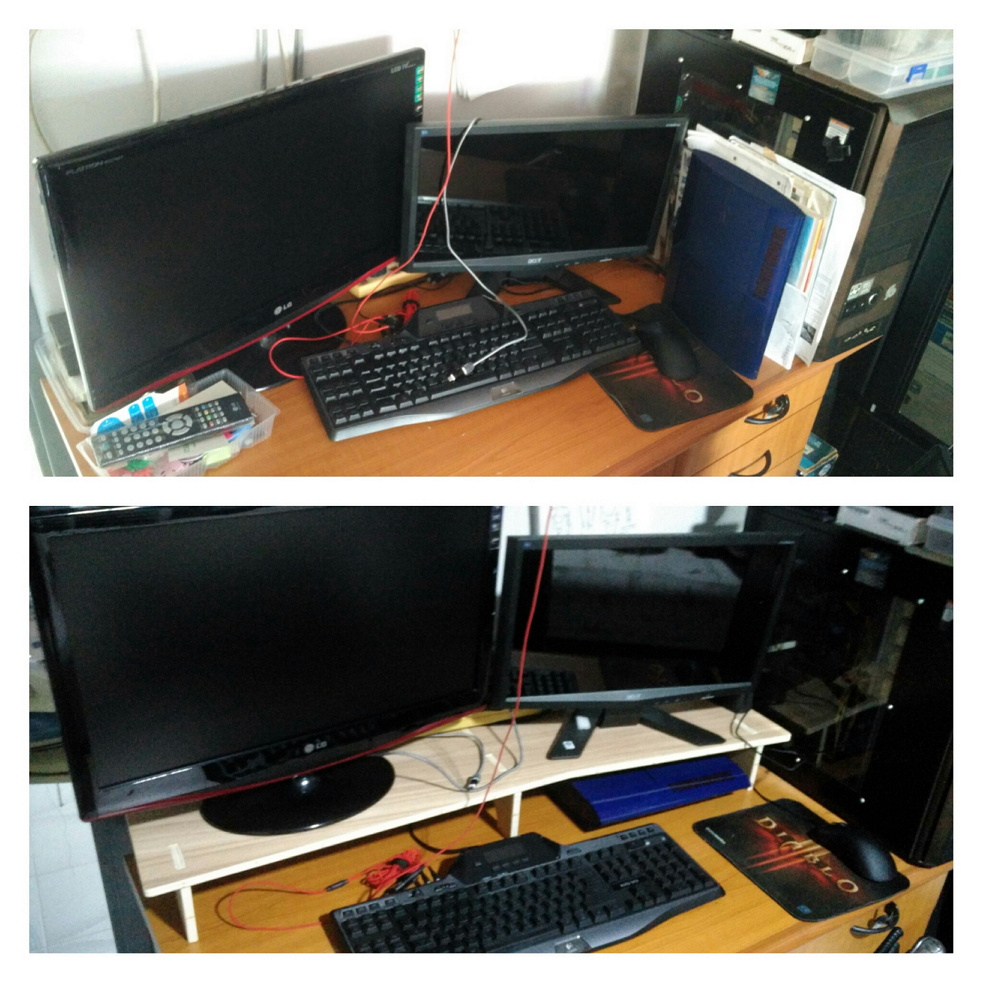 There are 2 Monitors on my desktop for dual screen purposes and it is occupying quite a big space when combined, plus my desktop is also occupying too much space.