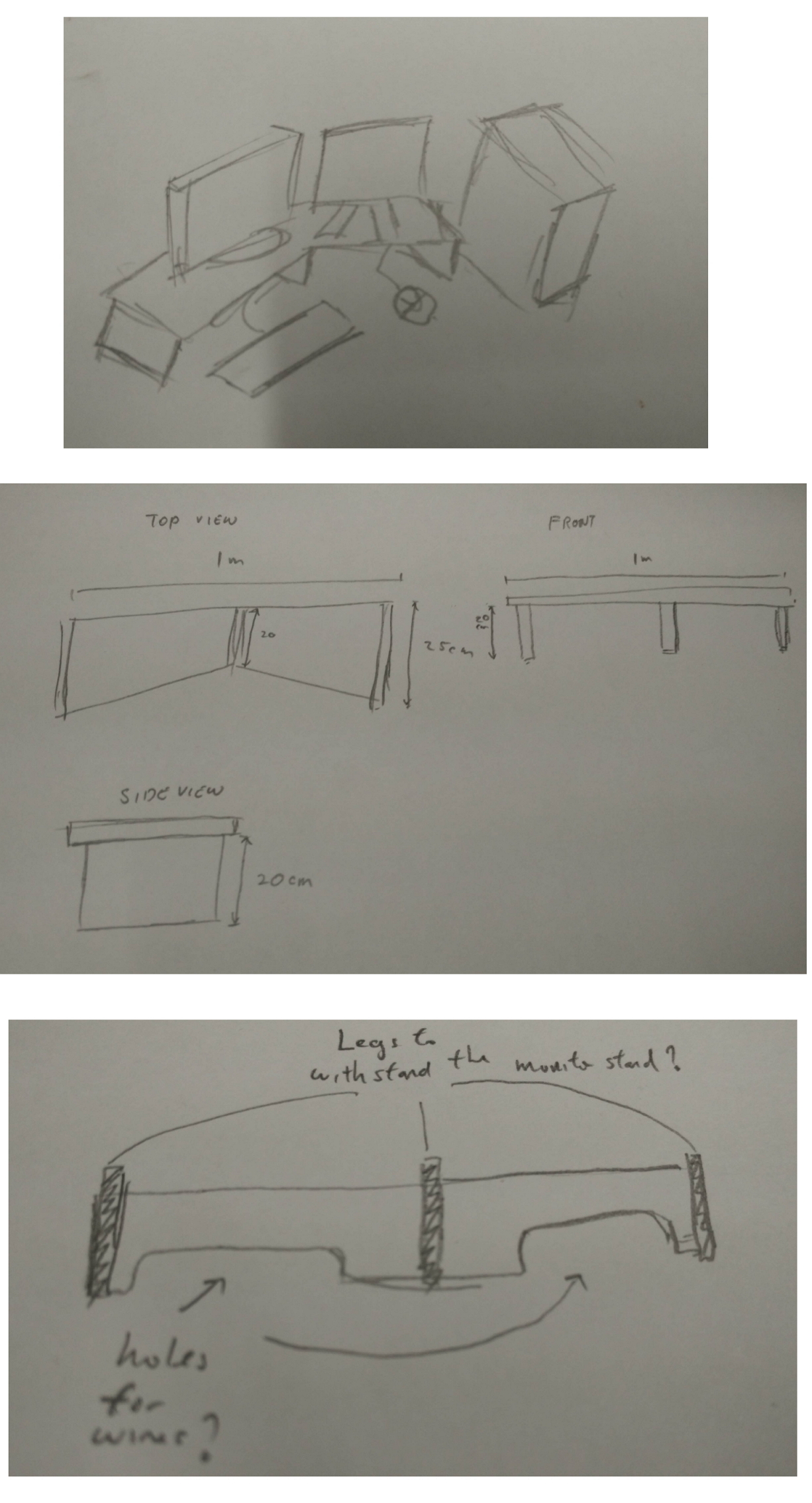 I drew rough models of my TV and Monitor as a reference for my monitor stand.