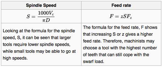 Feedrate = chip load x rpm x no of flute