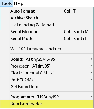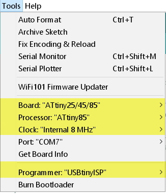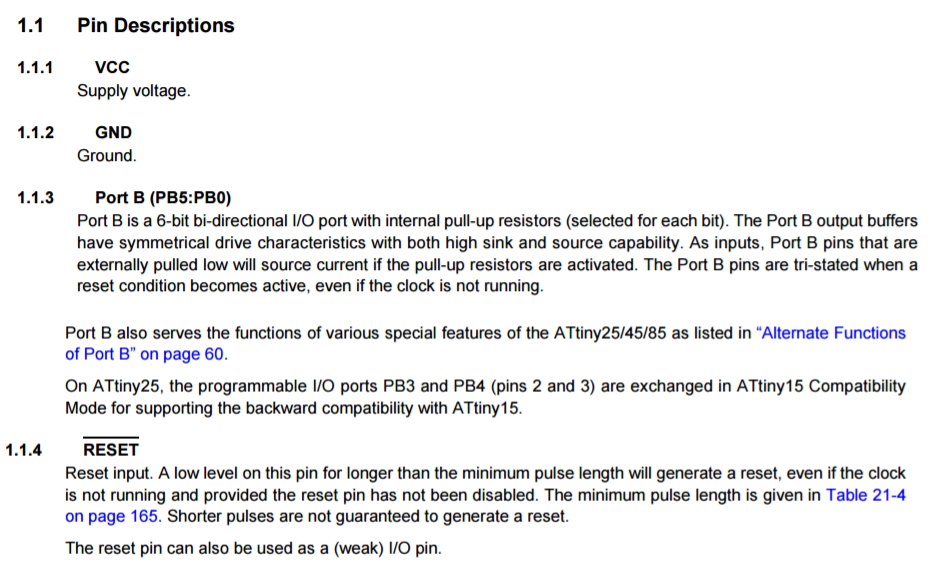Reading thru the Datasheet, it shows plenty of information of the ATTINY85 which I used for the hello board.