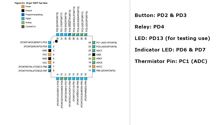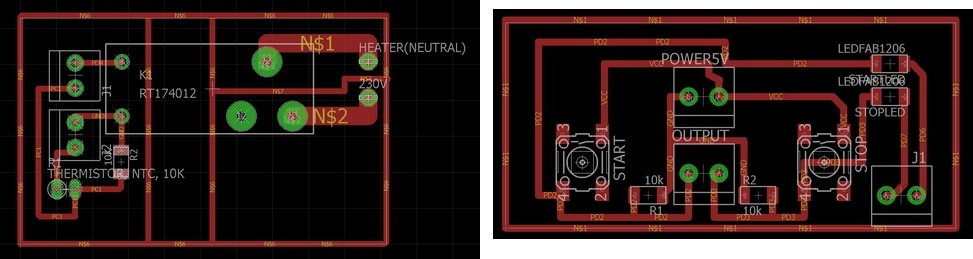 After testing, I designed 2 breakout boards, one as button input and the other to control the relay to turn on the heater.