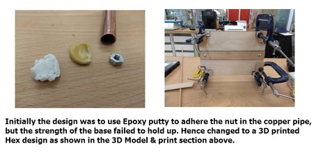2) When working on the body for the Vacuum former, I had a hard time trying to make the base stable as it is a copper pipe and there was no way to stablize it. My course mate, Jeff, adviced me to design a hex design to affix it to the base to stable it. There is where I 3D design it and placed it on the base.