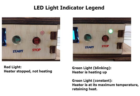 I added LED indicator lights, to show the users when the heater reaches its recommended heat.