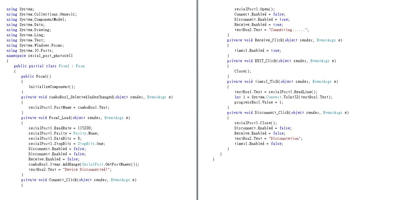 I write an GUI with c# to test the photocell module, and the result shows good.