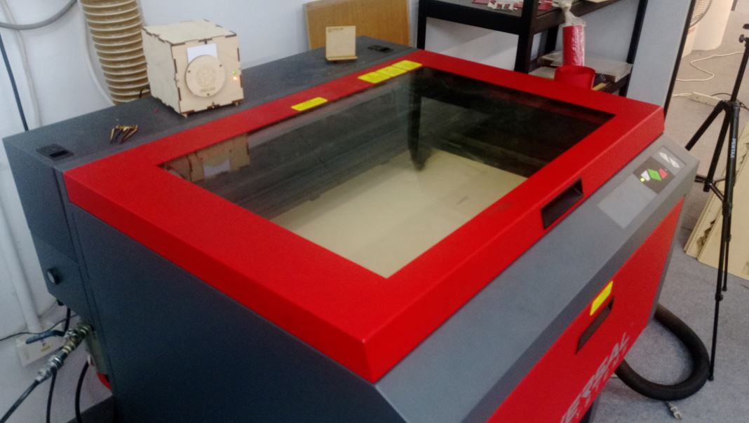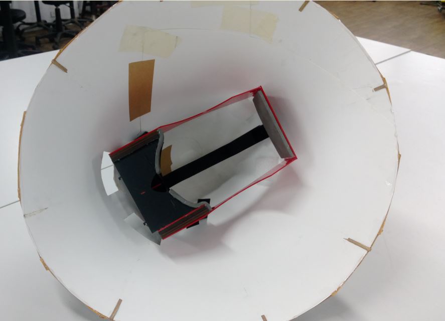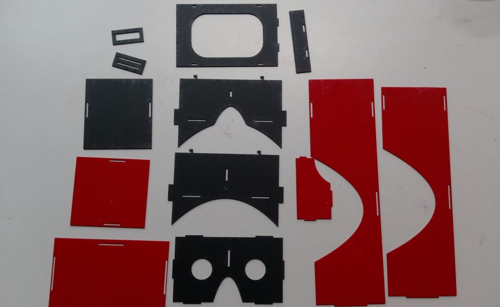 First, I take google cardboard alike as sample to draw pieces of the VR glasses with CorelDraw. Second, I chose acrylic with 2 mm thickness as the material for laser cutting. Third, I combine all pieces to be a VR glasses. Finally, I put the VR glasses into the silver helmet and fixed them with velcro.
