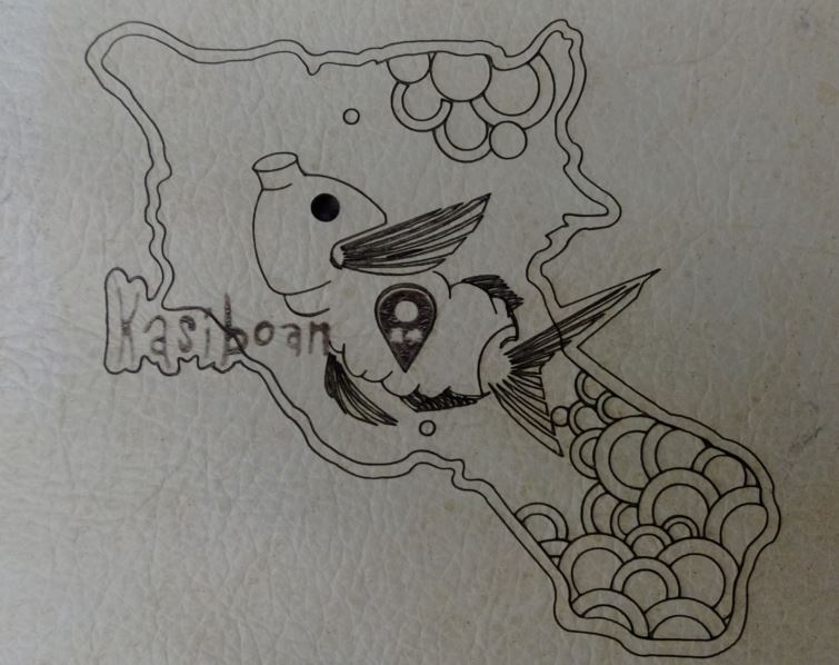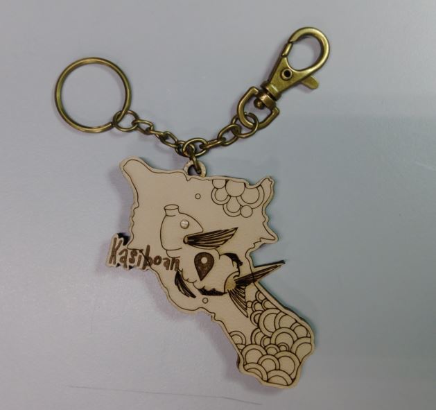 The third object, key chain, has a special maening, it represents Kasiboan which the place gathering garbage. First, I draw the key chain with 2D drawing software CorelDraw. Second, I choose pigskin and wood as the materials to be cut by laser cutter. Third, I also stick a NFC tag on the back of the eye for the following identify phase.