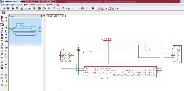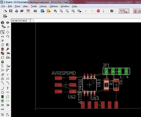 When I have all the components I I made necessary connections on the Schematic sheet. Then again click on the "generate board" option to make the design of my electronic board.