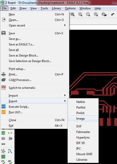 Then generate an image of my electronic design I had to select in "layer setting" and deselect everything I accept "TOP" and Pads, finally go to export as image.