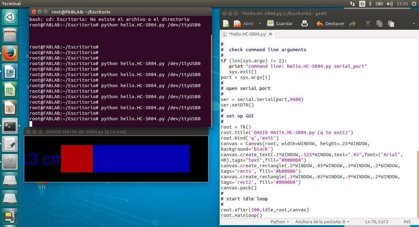 Then I programmed the Attiny44 and the ultrasonic sensor using Ubuntu's terminal
