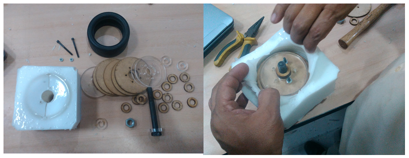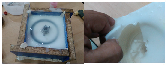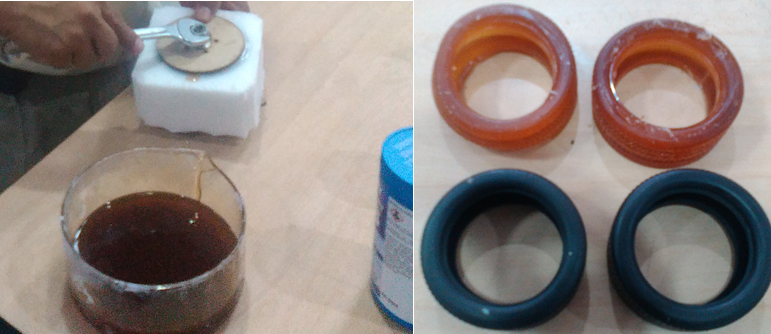 Put the resin in mold, reinforced the outside to avoid leakage of the resin. And wait for the drying time, then remove the urethane wheel. And repeat the same procedure for the next wheel.