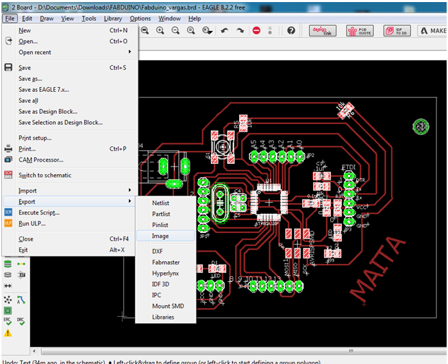 Generate a Board to be able to order the components and make the design of our Fabduino board.