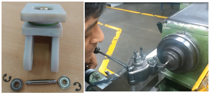 Second part partial assembly of the other mechanical components, shaft was machined with its required adjustments for correct rotation.