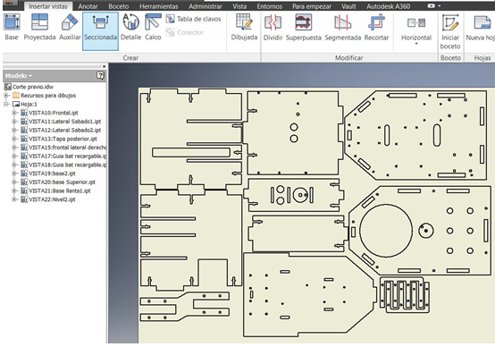 Then to perform the milling of the base and the top of the medical cart conveyor was necessary the use of machines milling Shopbot. It is necessary to use the file with the extension (.dxf).
