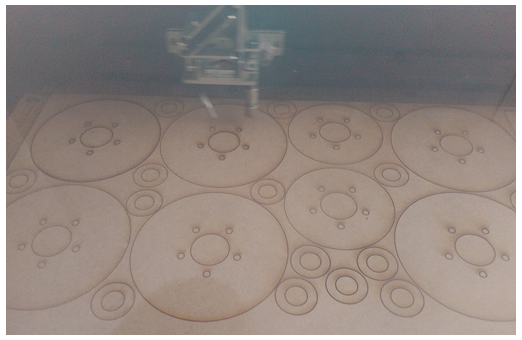 With the file extension (.dxf), configure the laser cutter with the help of the procedures of week 4 obtaining the first model