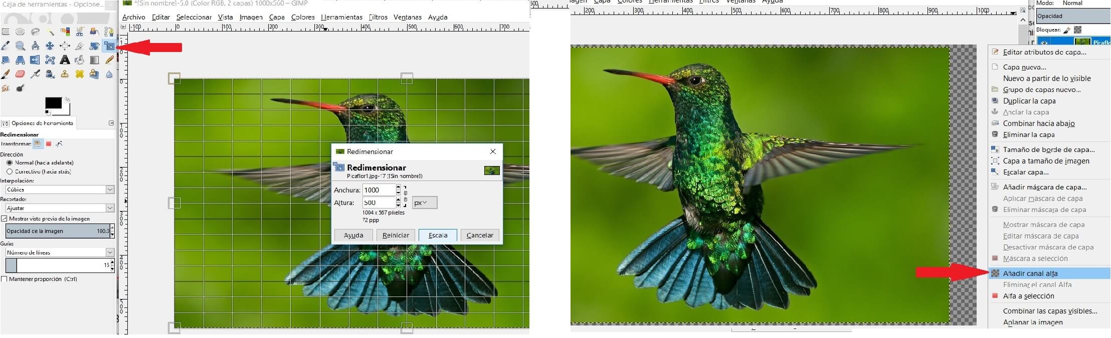 Then I resized the bird on the canvas. Now on the layers right clic extend and fix using Add alpha channel