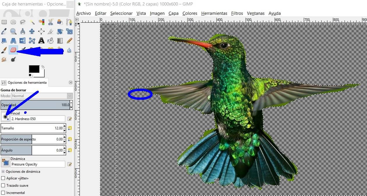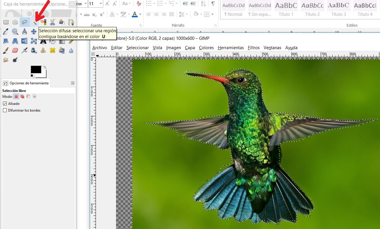 Now use the tool Difuse selection (U) and delimit the bird, then use de Delete tool to erase the bird's background.