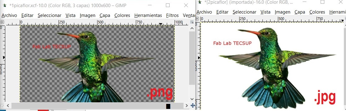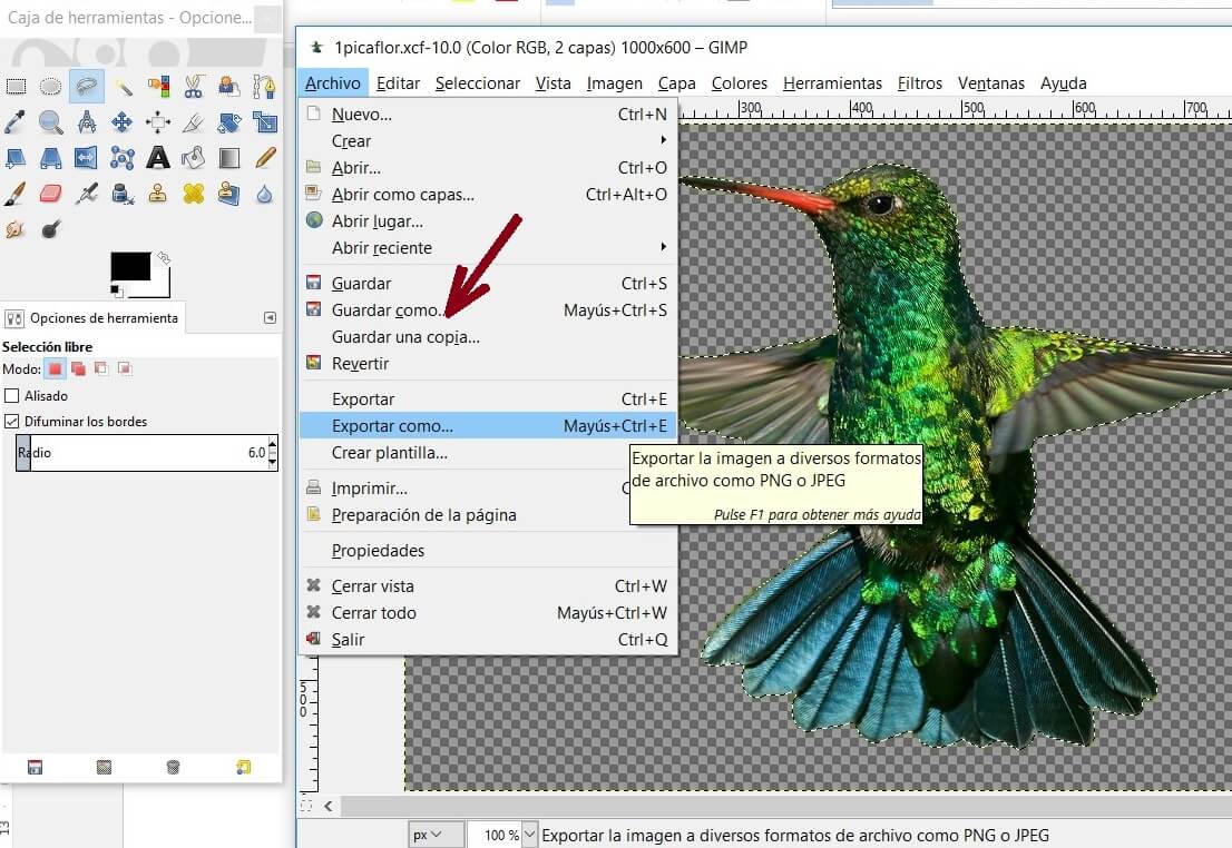 Now you are ready to take them to raster. First save the image as .xcf (GIMP). To upload the file to web you should save it as .jpg or .png, a little bit heavier formats. For this you need to use the option Export As