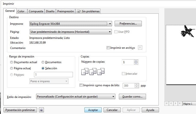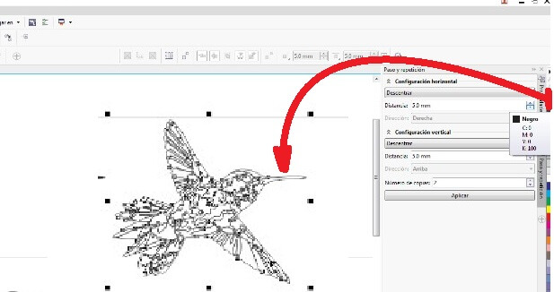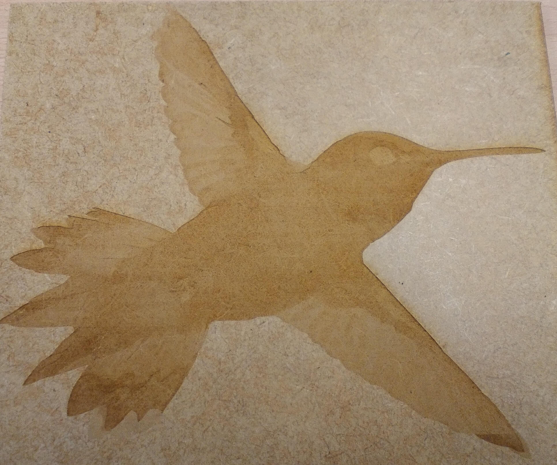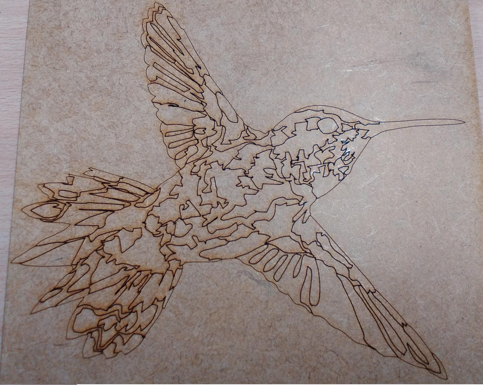 I used the work space configured to match the machine, an 600 x 900 mm area. I imported a bird's image on the workspace and you can modify the image as you want.