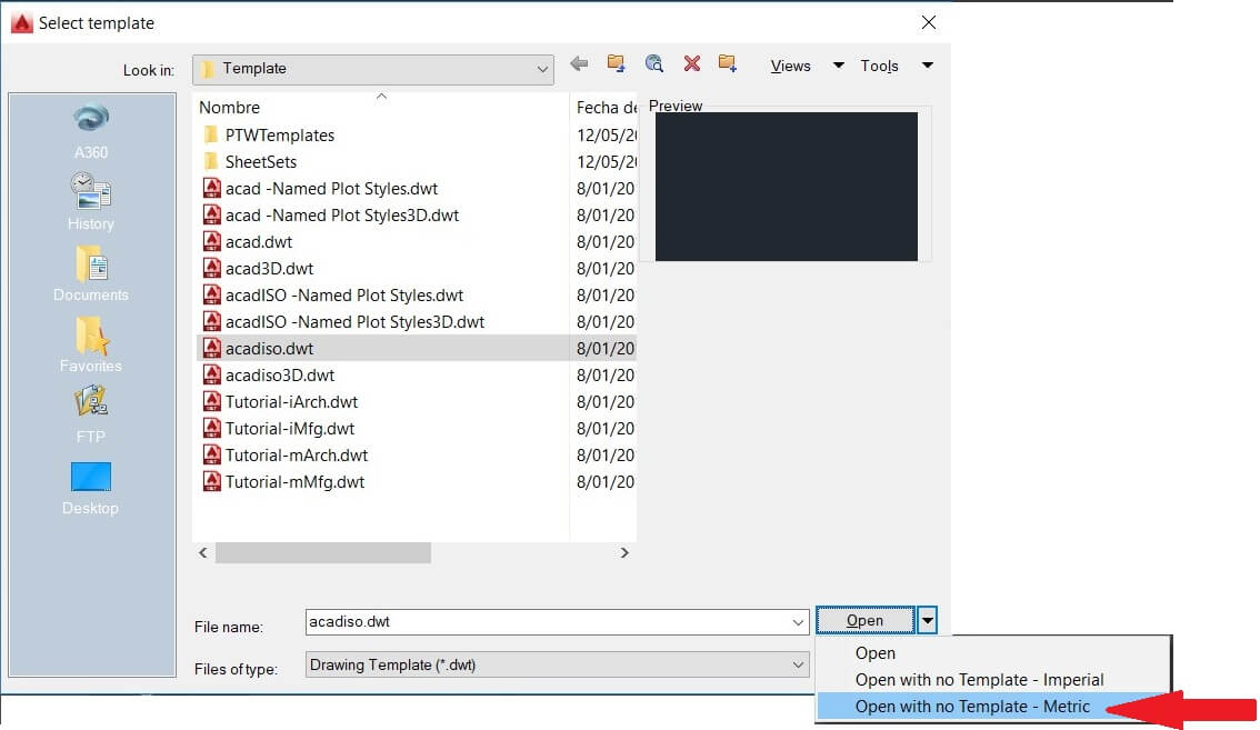 Then I selected the sheet without frames (acadiso), and the metric units. After that I configured the layers for drawing.