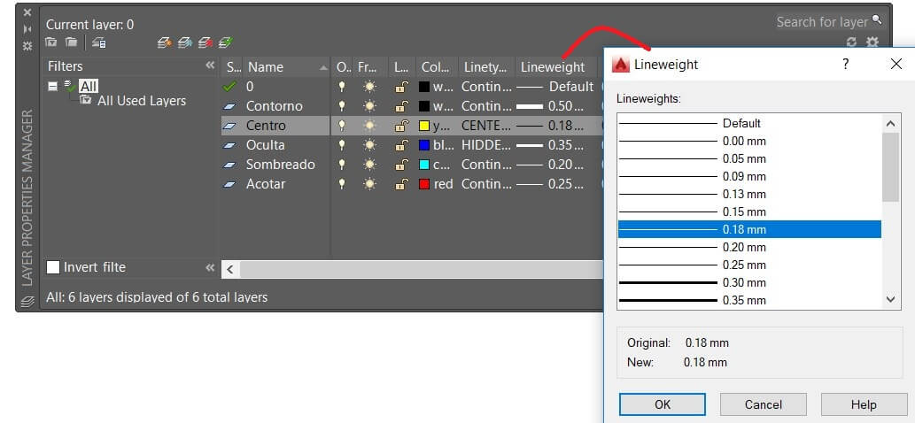 Here I generated the line types, thicknes and color according to the international standar. Now we are ready to draw.