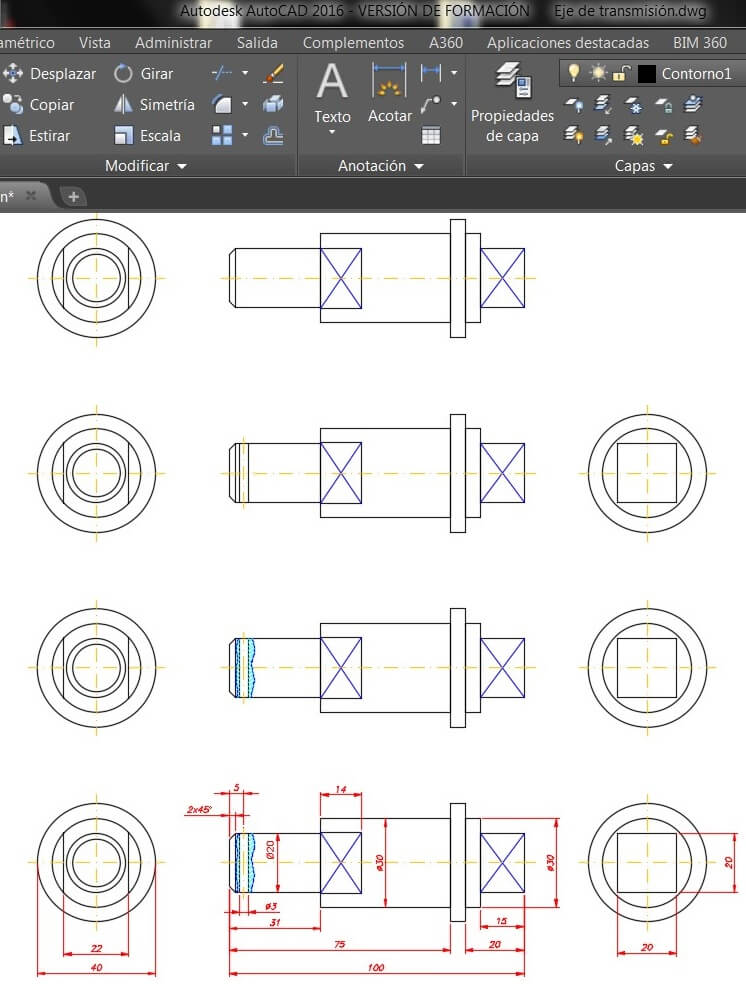 Then I generated the layers to recognize the different type of lines to draw. I started drawing considering the measures showed on the workspace.