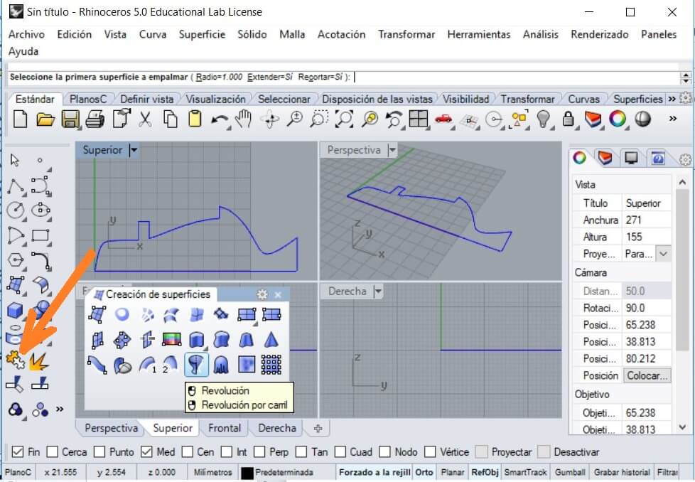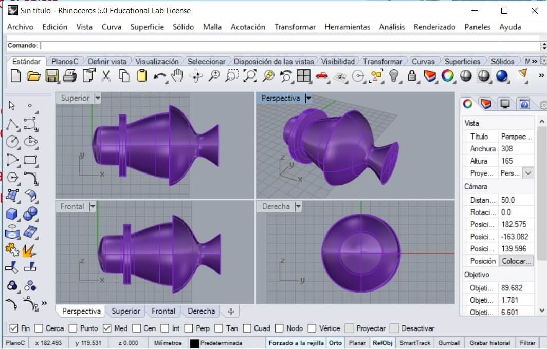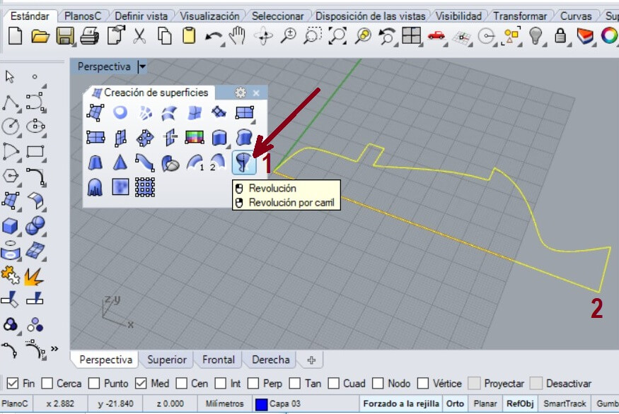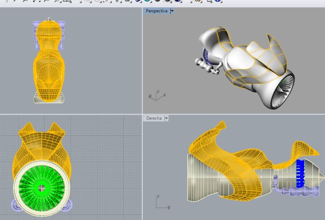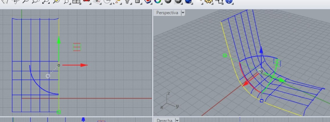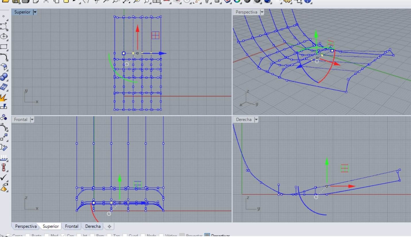 Then on the top view I was able to select the points. Also using the lateral and the perspective view I made the modifications until I got the shape I needed.
