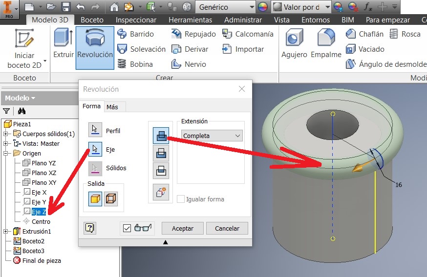 I used the revolution command and I chose the Z axis on the Browser. Then I chose the YZ plan to made another sketch