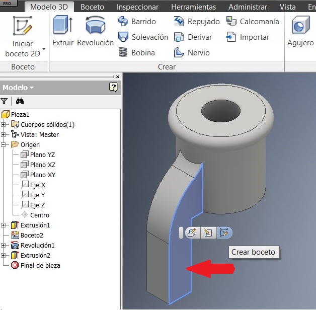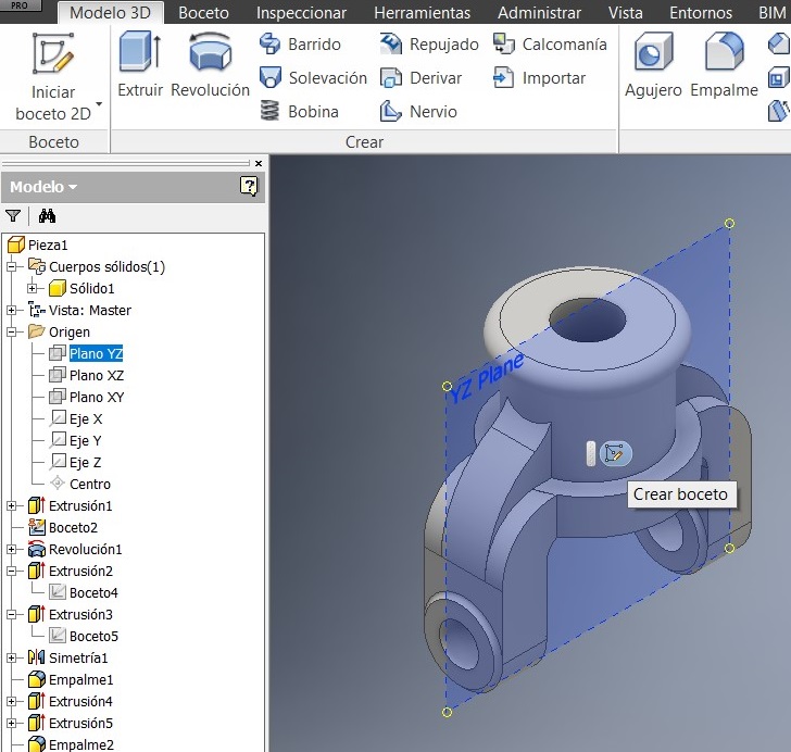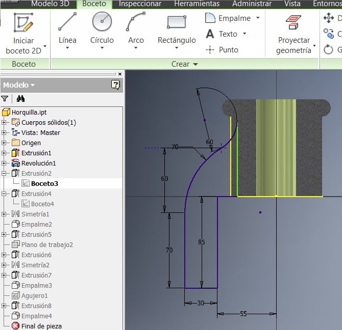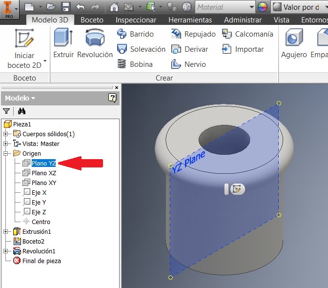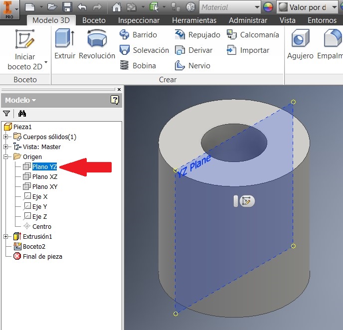 Then I extruded a cylinder generated by the 2 diameters. Then I chose the YZ plan and made another 2D sketch