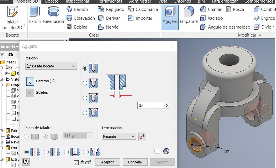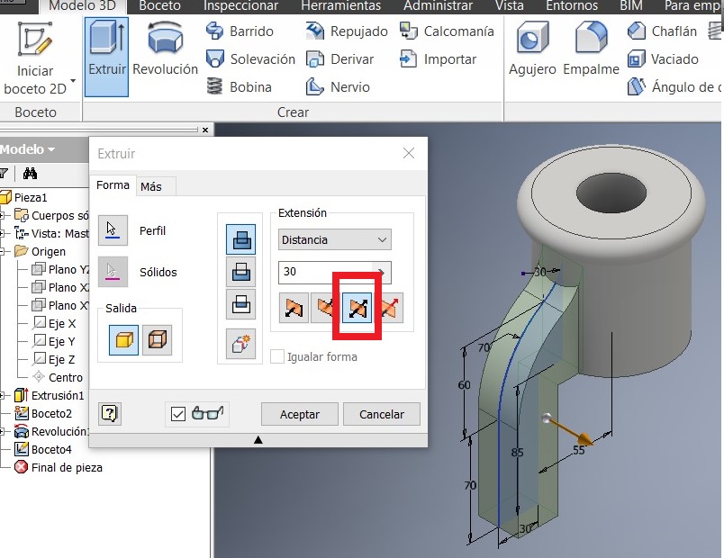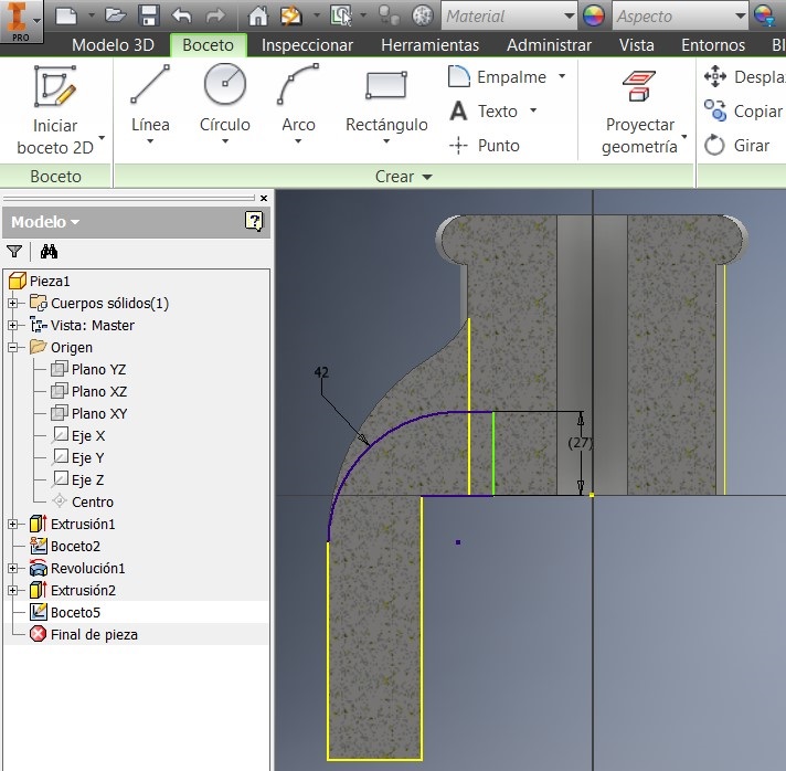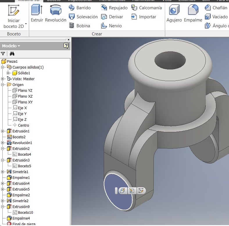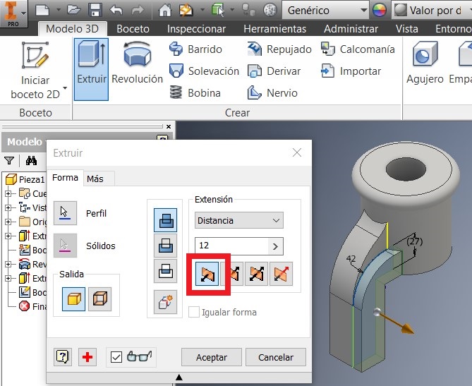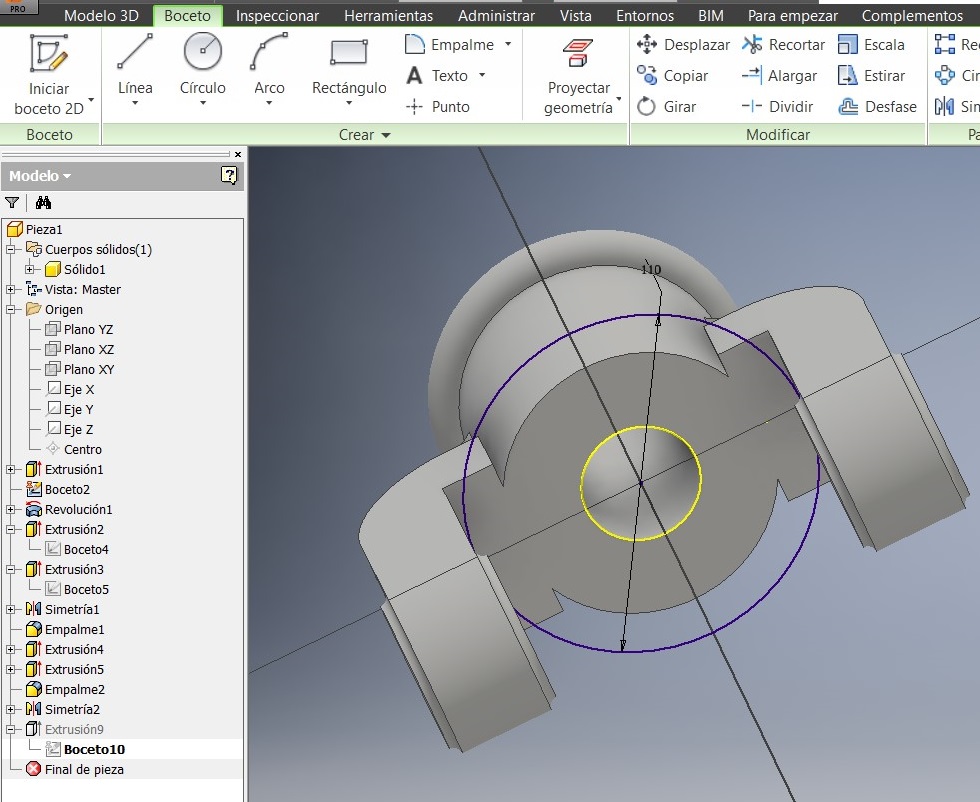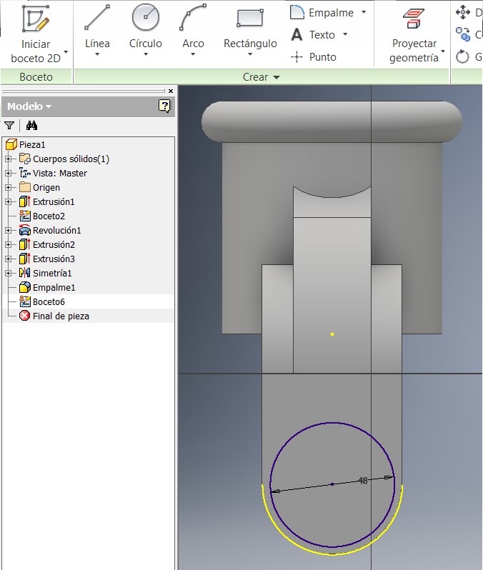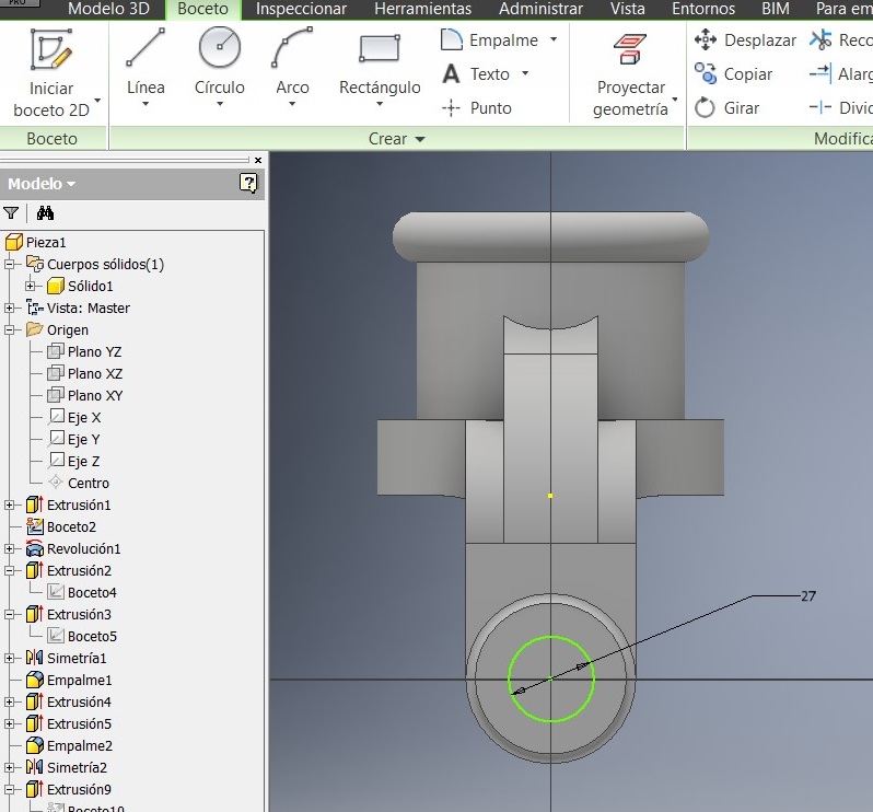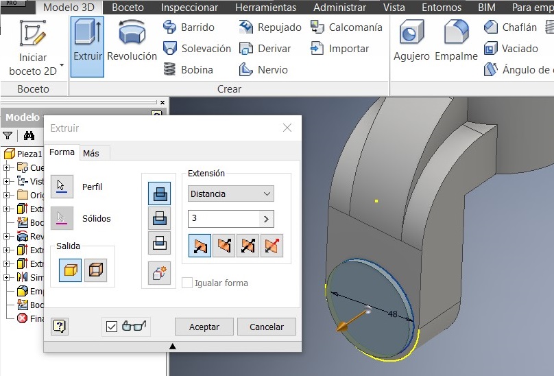 After that I used a command to generate the 27mm radius, and to make a circle Draw a 48mm diameter and verify that both circumferences are concentric, and extrude them 3 mm