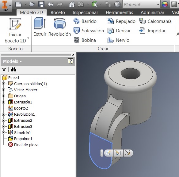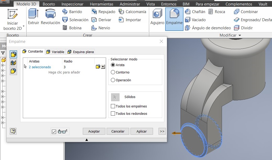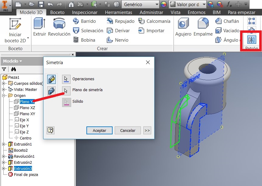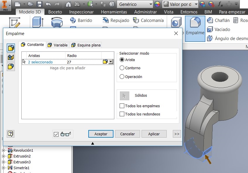 Also added the 3mm radius. Identified the simetry plan and activated another plane click on XZ plan.