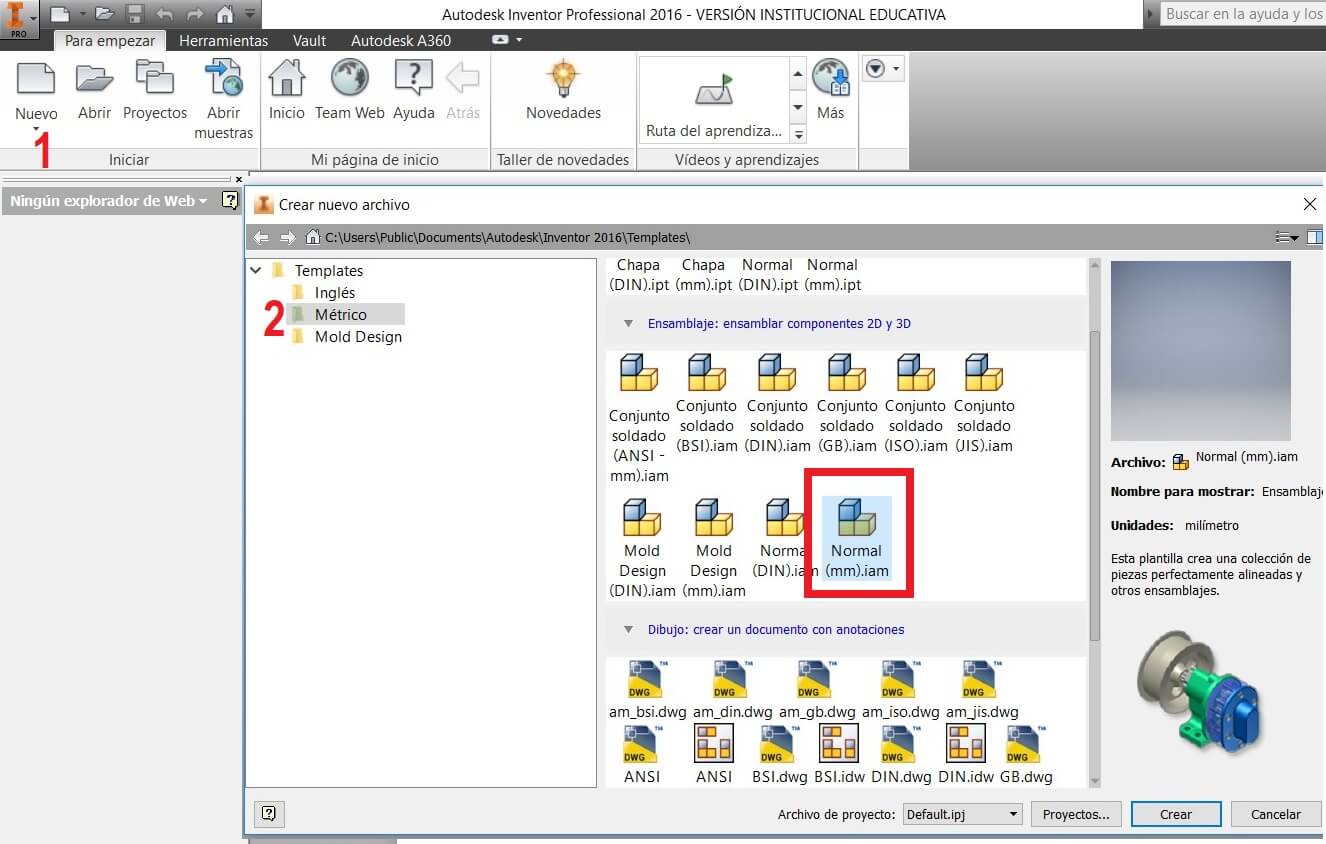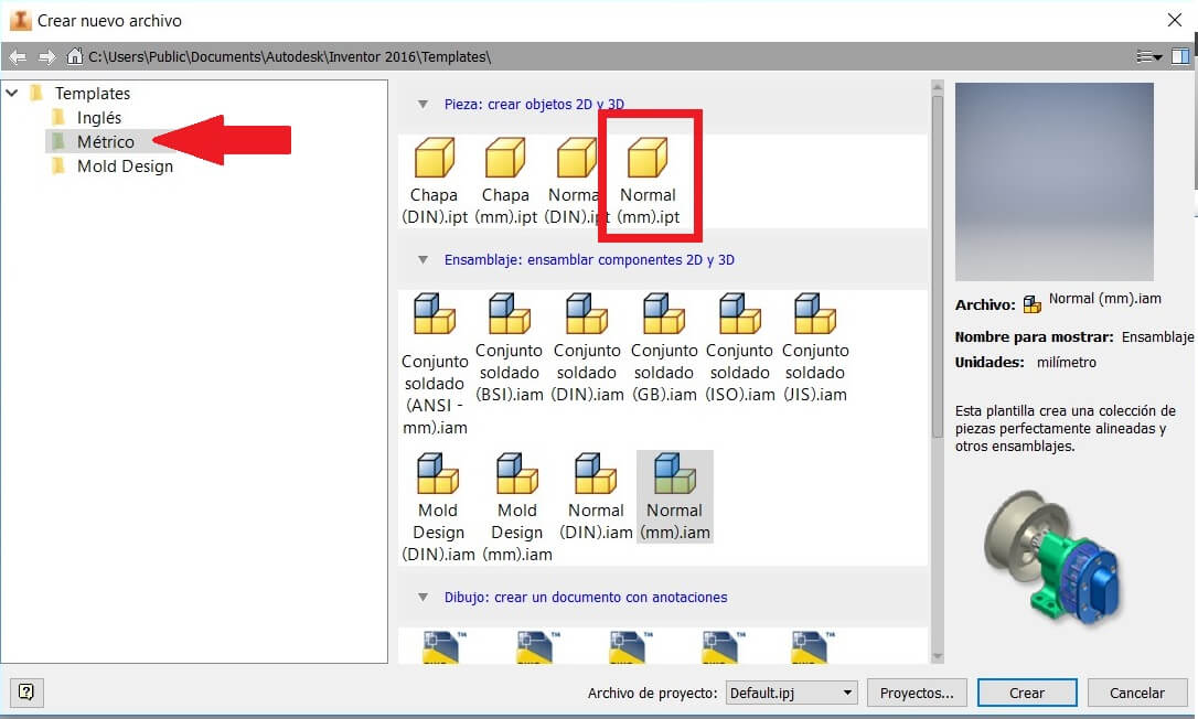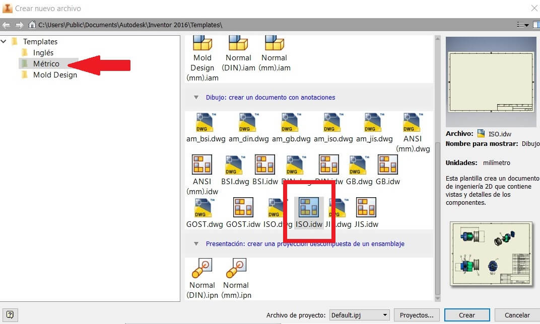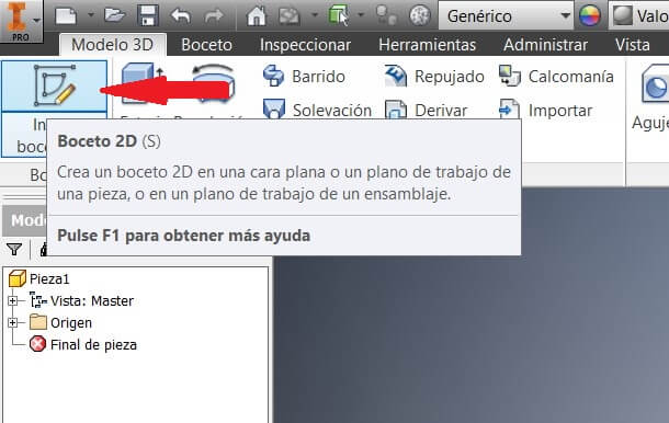 Select the units to work, and the file on format .ipt. Also clic on New sketch
