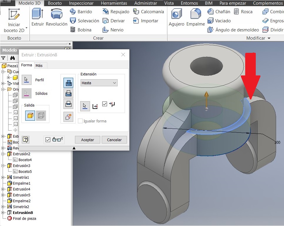 Also I extruded a 12 mm distance this sketch. Then I used the simetry command to strengthen also the other side.