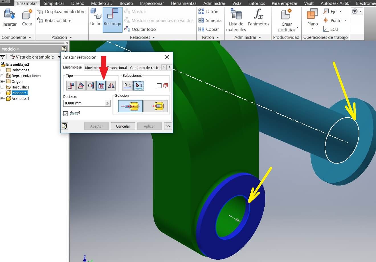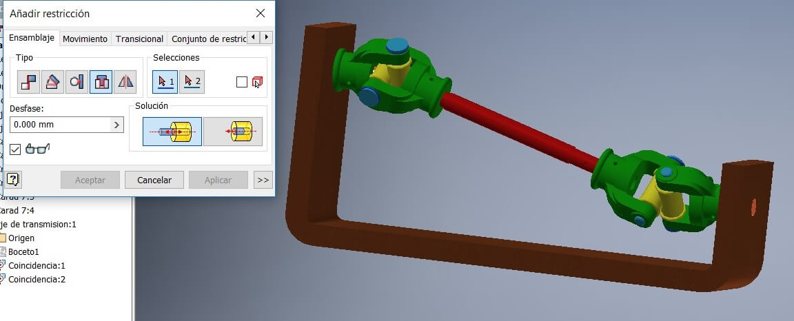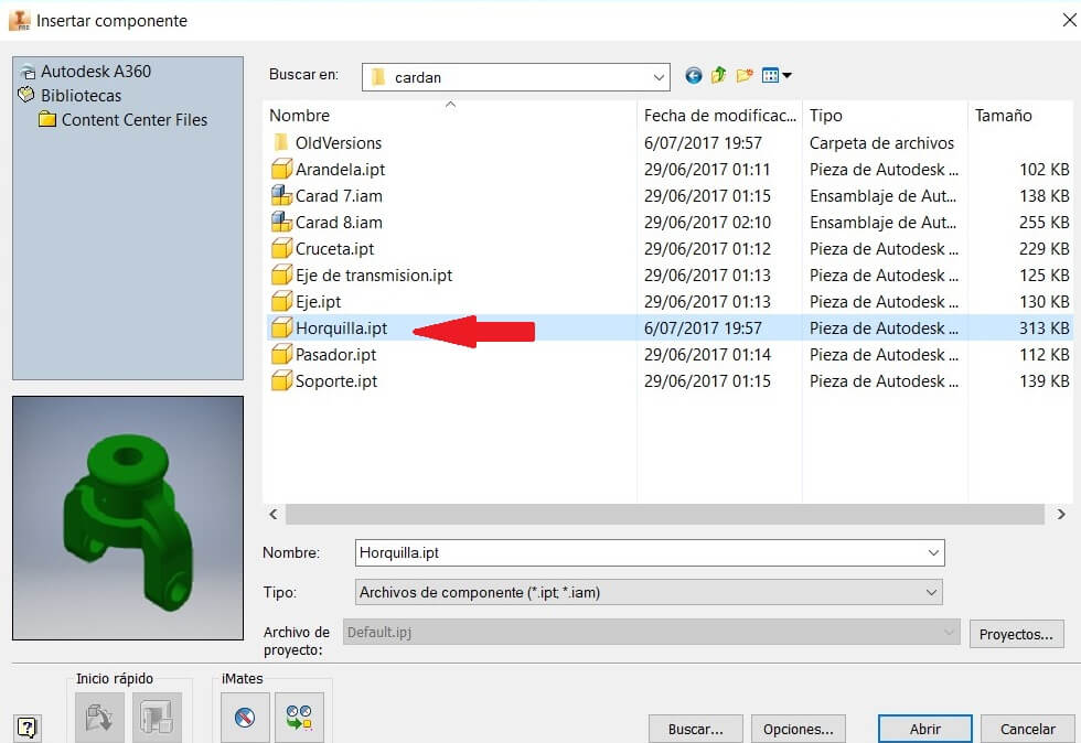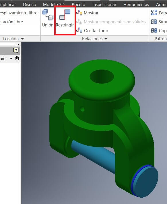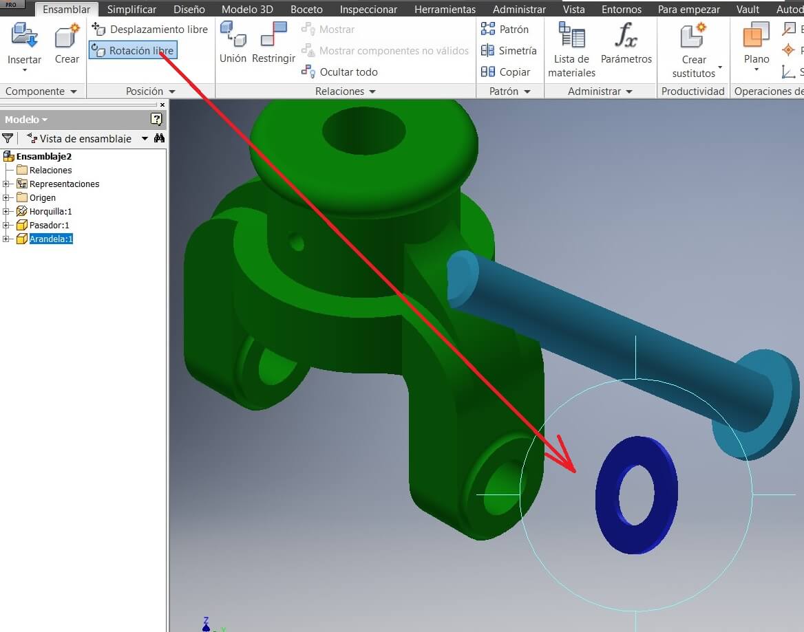Select the folder and the components for the assembly. Place into the workspace the pieces and using the command Free rotation, assembly