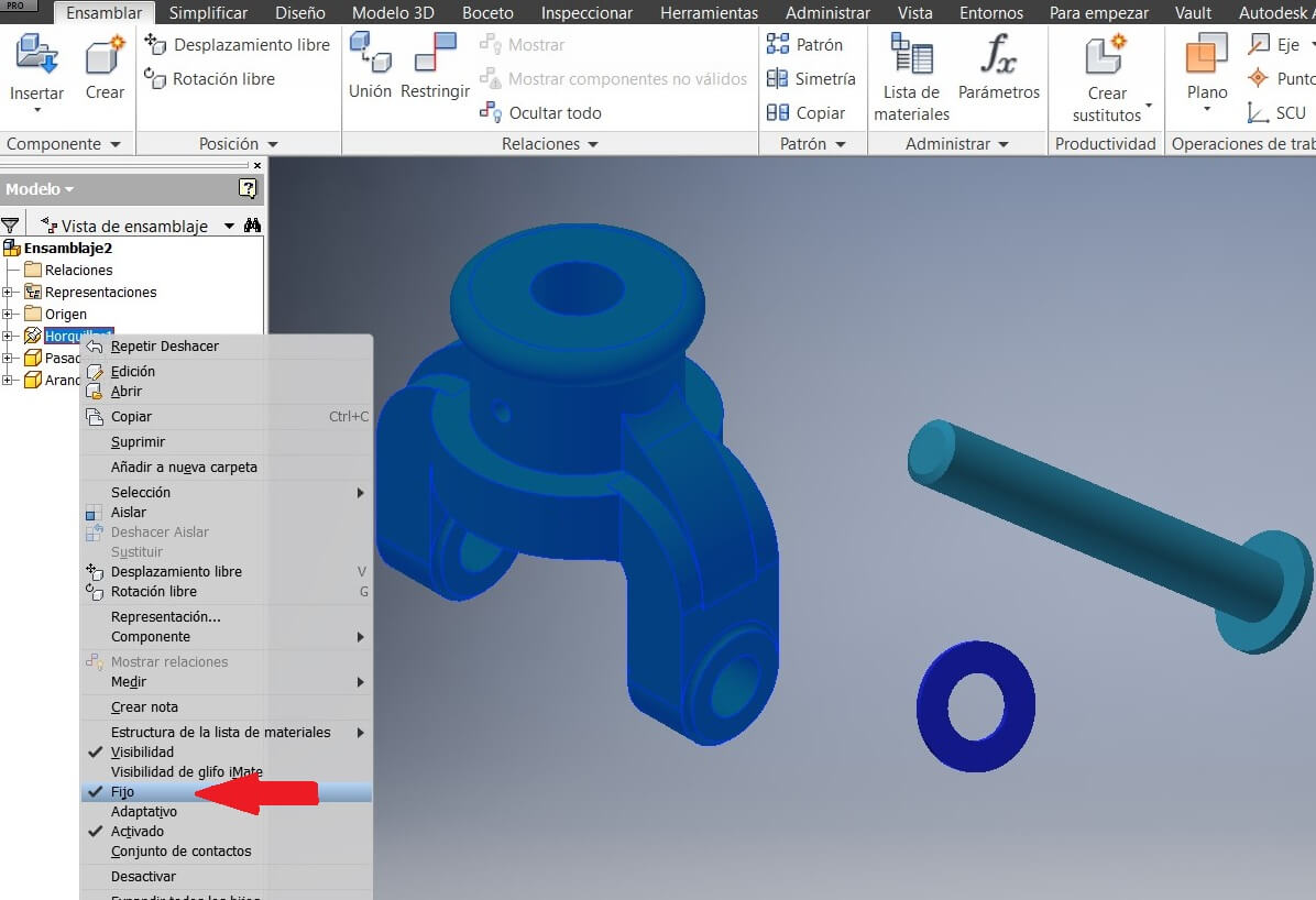 Fix a piece to avoid its movement and using the command Constrains start assembying