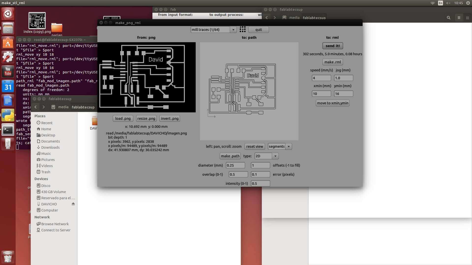 2. To mill the electronic board, the Roland MODELA milling machine (3D plotter MDX-20)