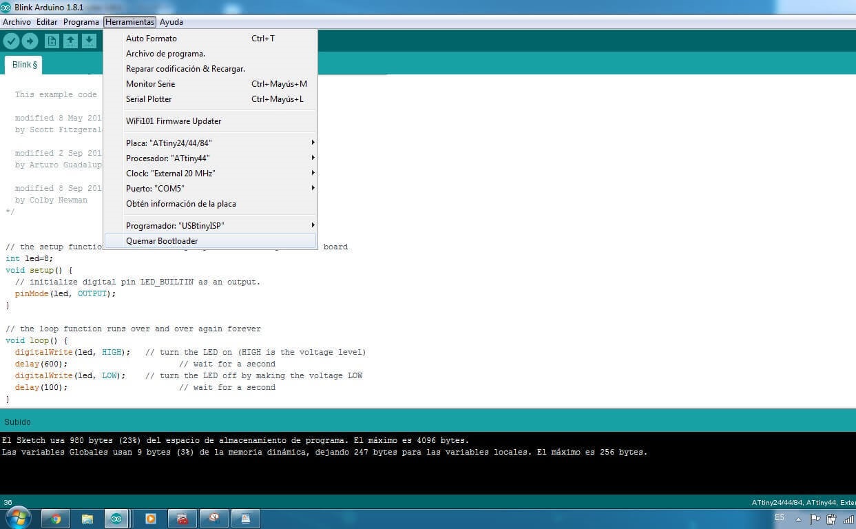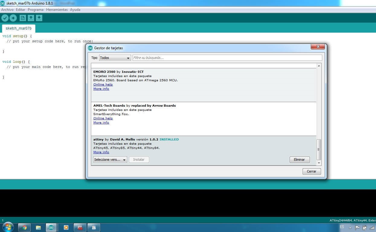 6 Verify the download and install the packages containing the ATtiny 44/45 integrated
