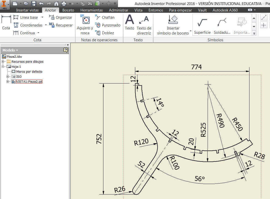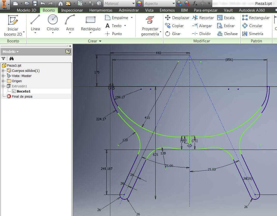 3 With the help of the Inventor software I began to make the sketch and the drawings, taking as a reference the sequence made in week 2.
