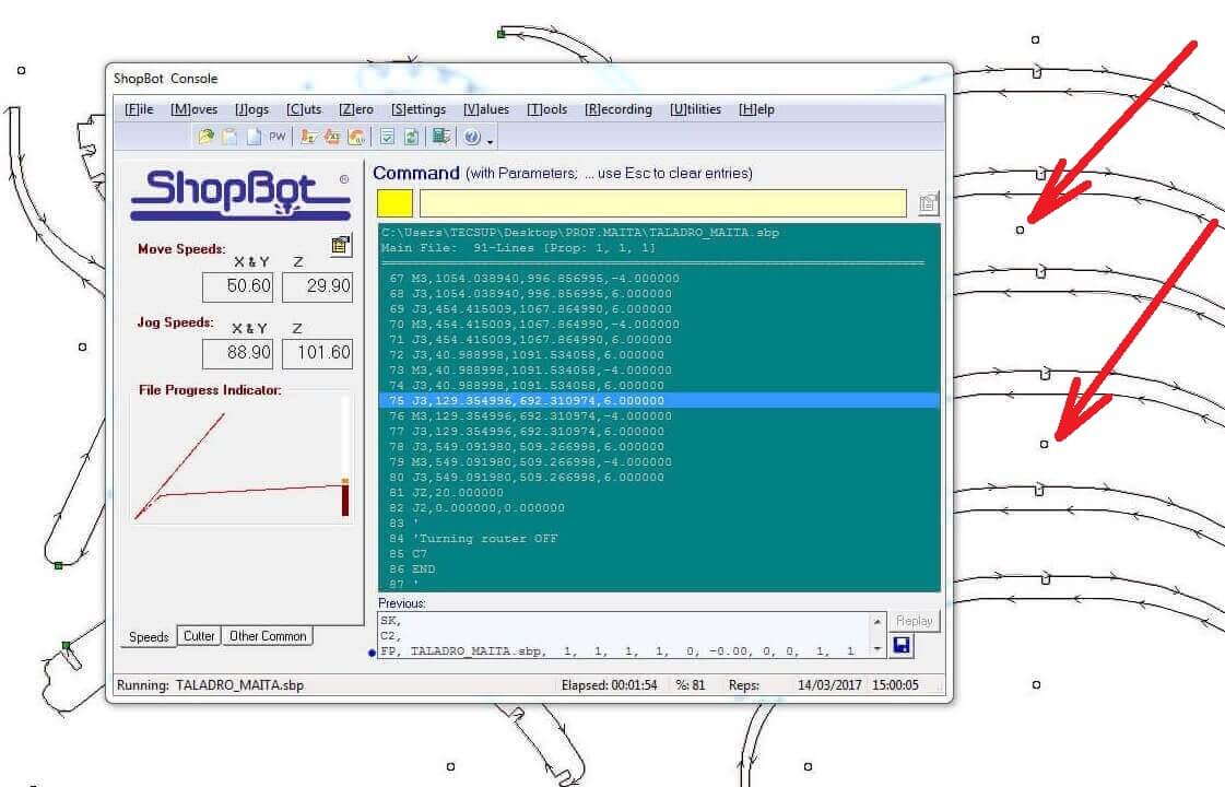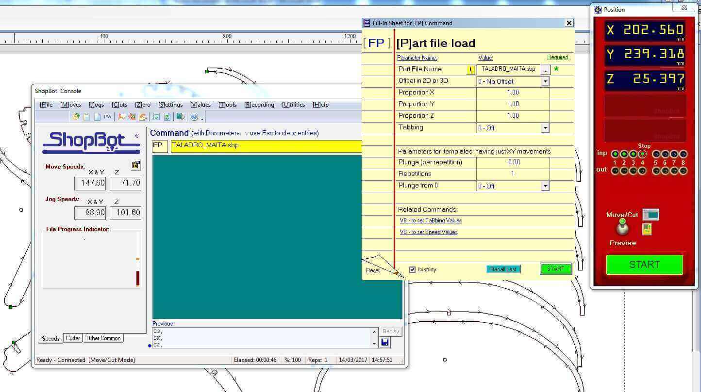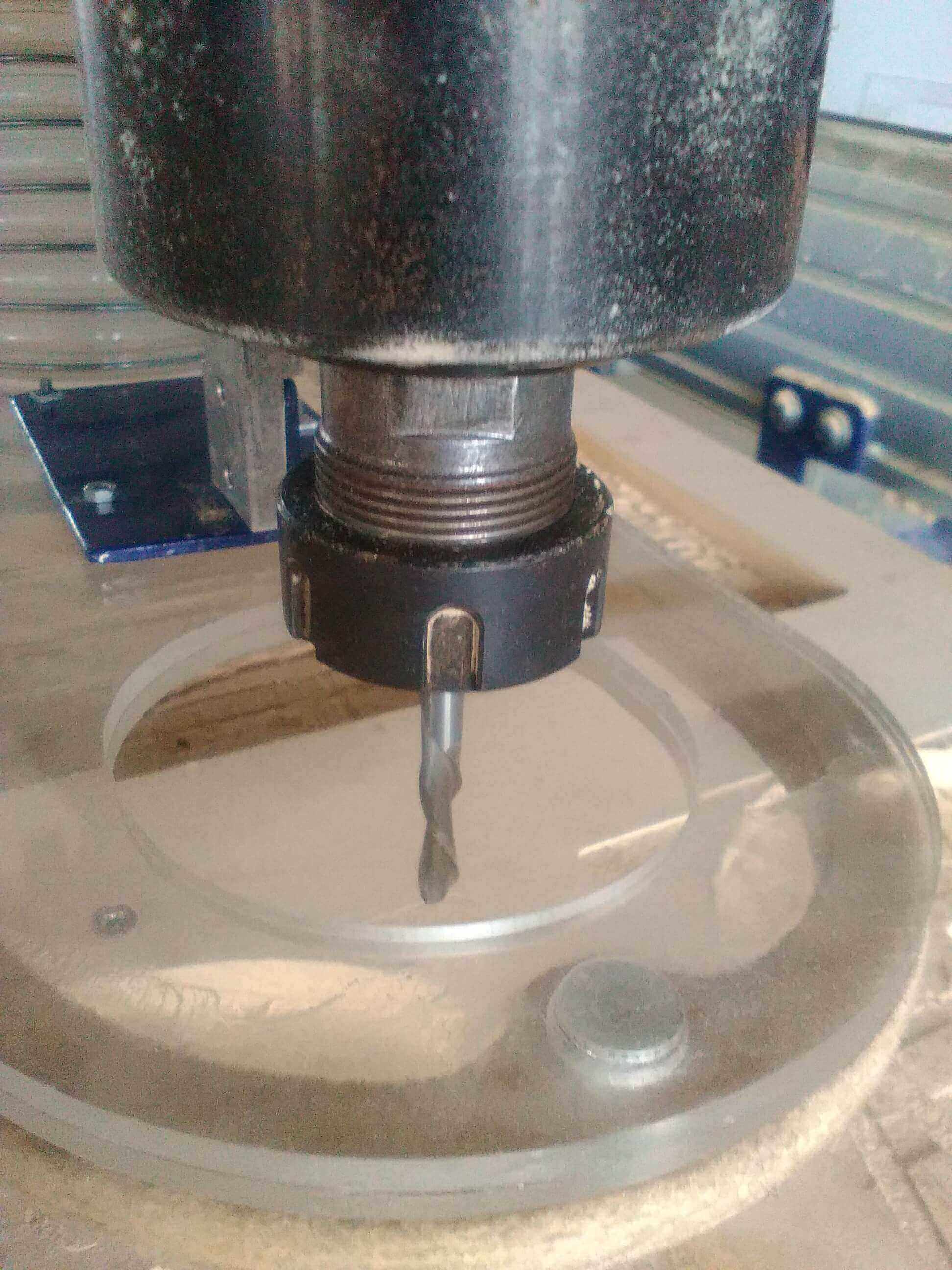When trying to mechanize fast it happens to have selected the excessively speed of 14000 rpm and to give the depth of pass plus 1.5 mm, with its advance of 100mm / sec. Solution: Re-start now if the recommended parameters are set at 100 mm / sec at a speed of 8000 rpm, with a depth of 0.5 mm per pass.
