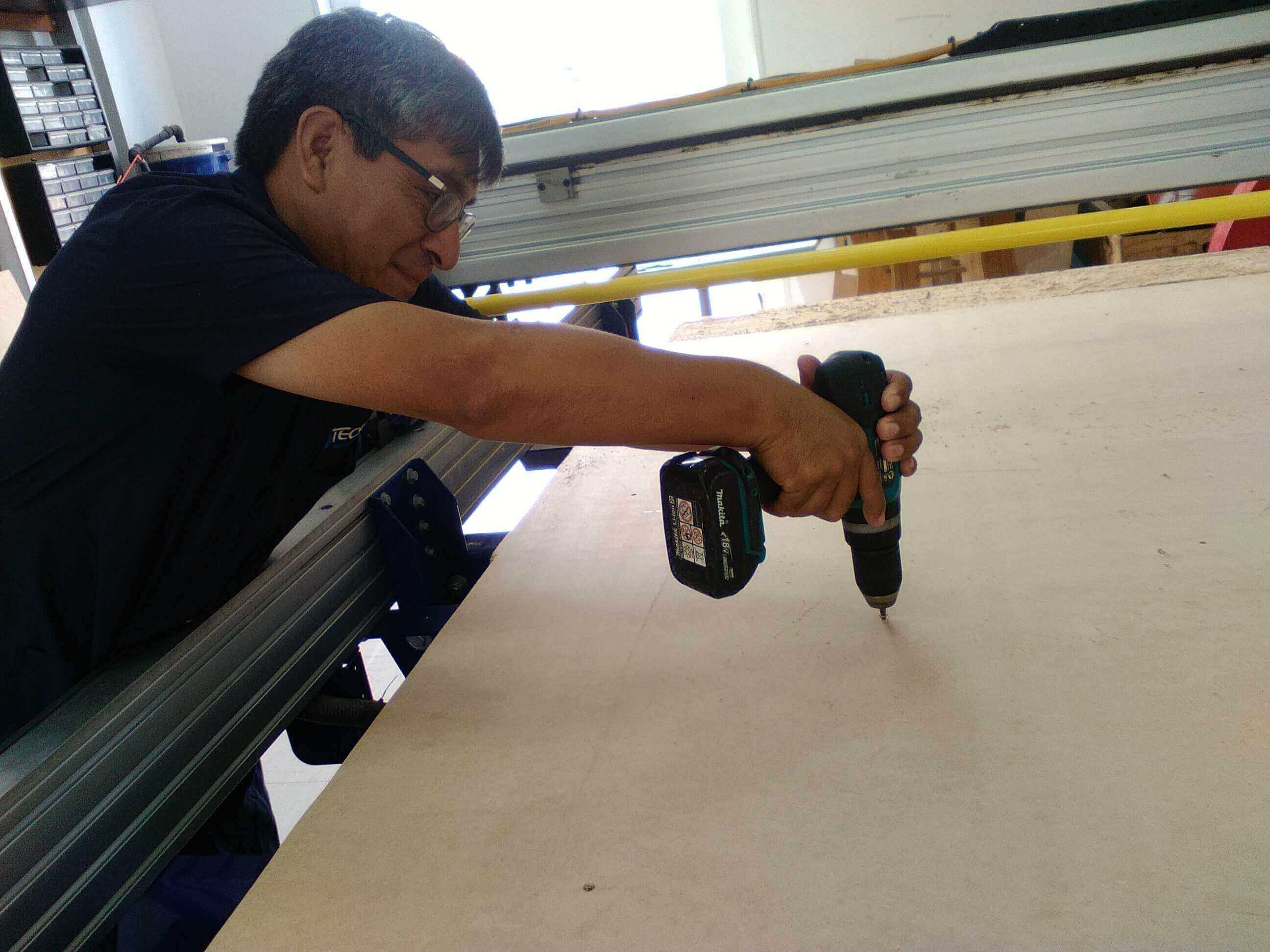 15 After choosing the points the milling machine, I could place a previous machining on the material to work. Then fix the stove bolts using a portable screwdriver.