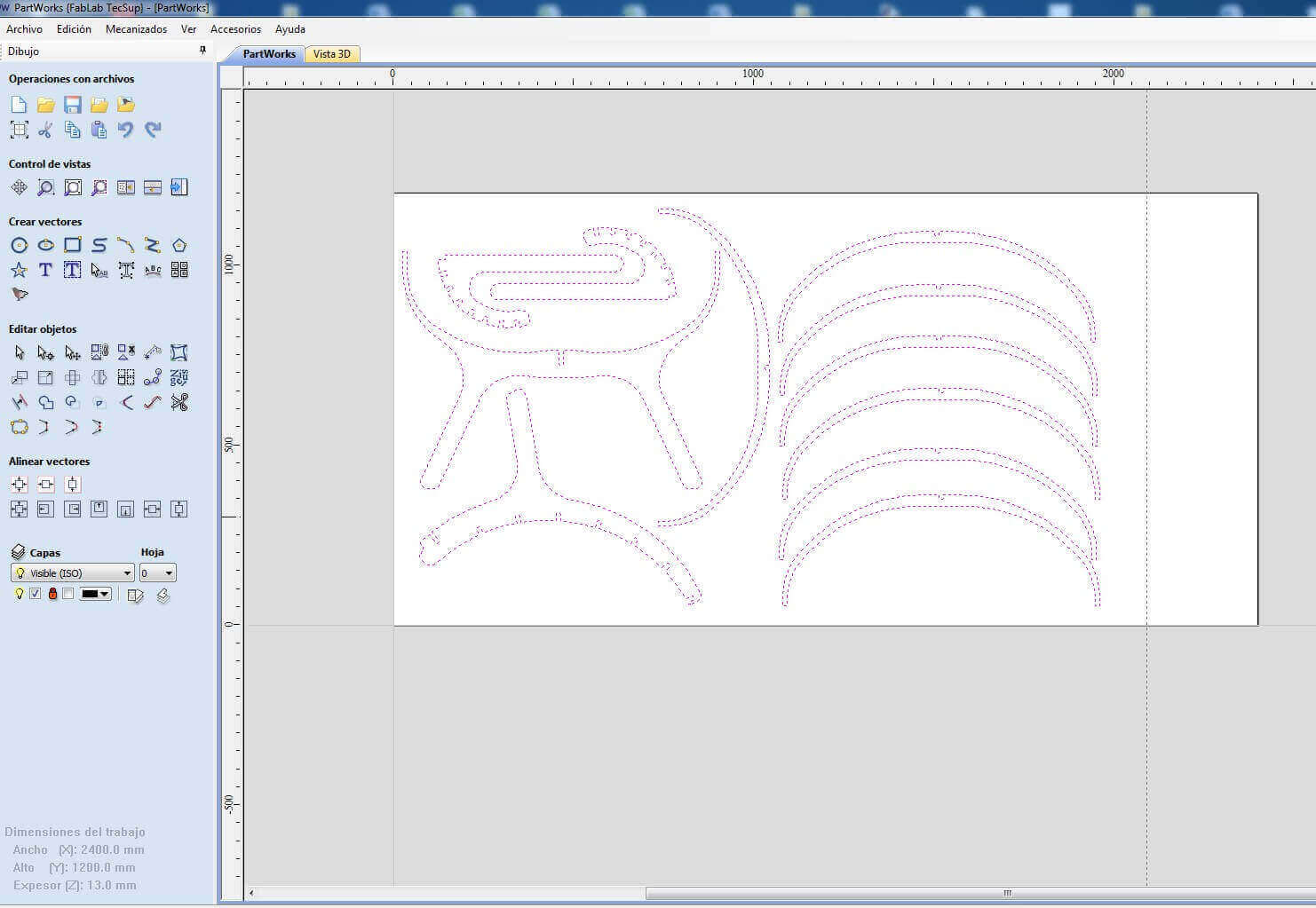 10 Use the software of the shopbot machine. The size of the work material (2400 x 1200 mm)