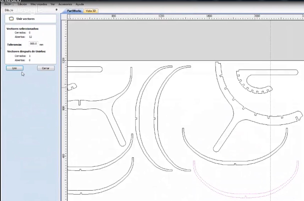 12 Then check the vectors of the components to be machined their lines are not separated.