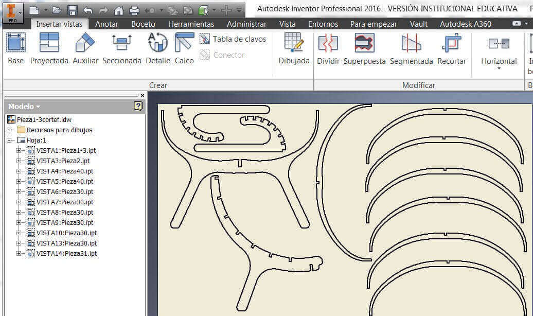 Then generate the parts with their MDF material thickness 12 mm, generating their respective planes.