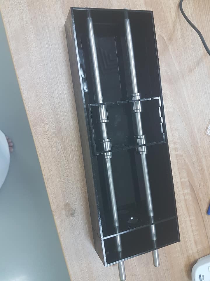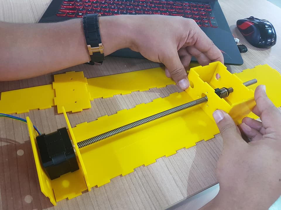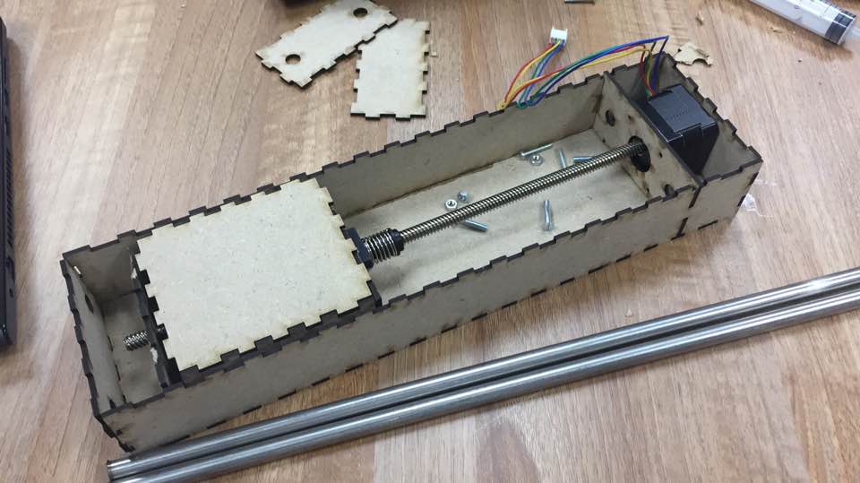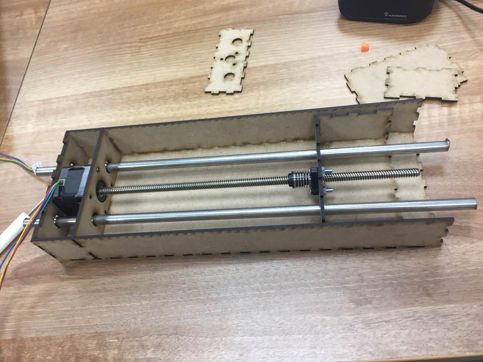 When I was desiging I found a problem aligning all the holes together, so what I did is I made a prototype with MDF to make sure that the stage is working fine.