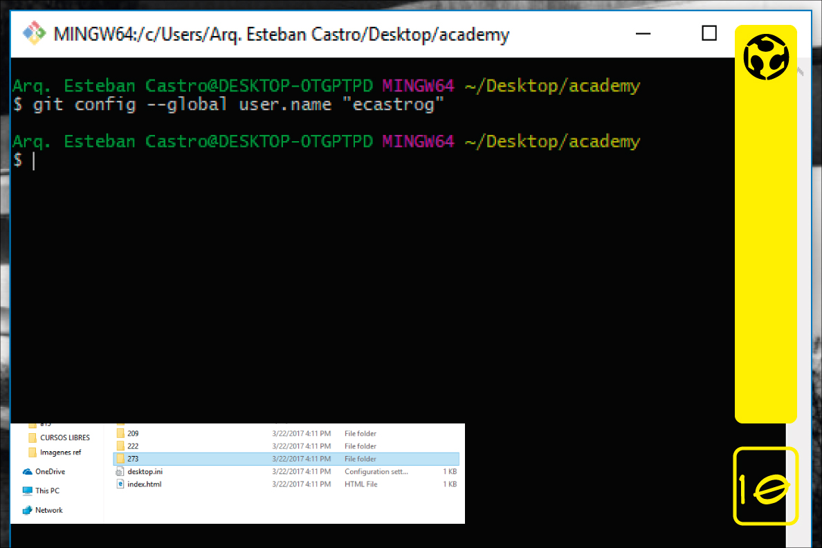 1) git config --global user.name "replace with your username"