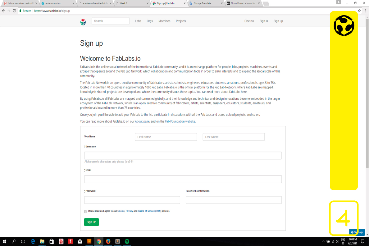 4. You need to register in https://www.fablabs.io, Is very important to have the student number that you received when you was accepted to the Fab Academy.