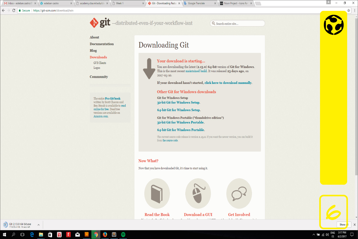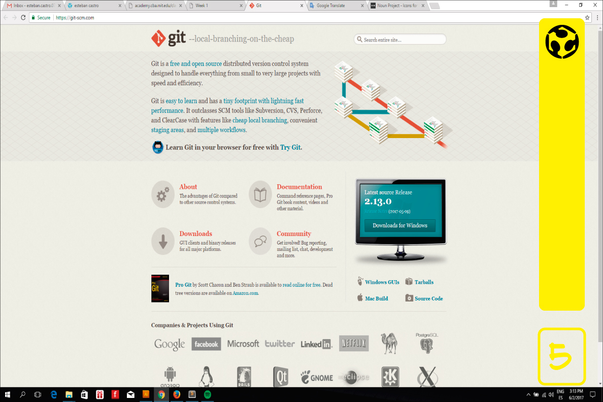 5. Download and install Git, It is compatible with Windows, Mac and Linux. Download the last version acording to your operating system.