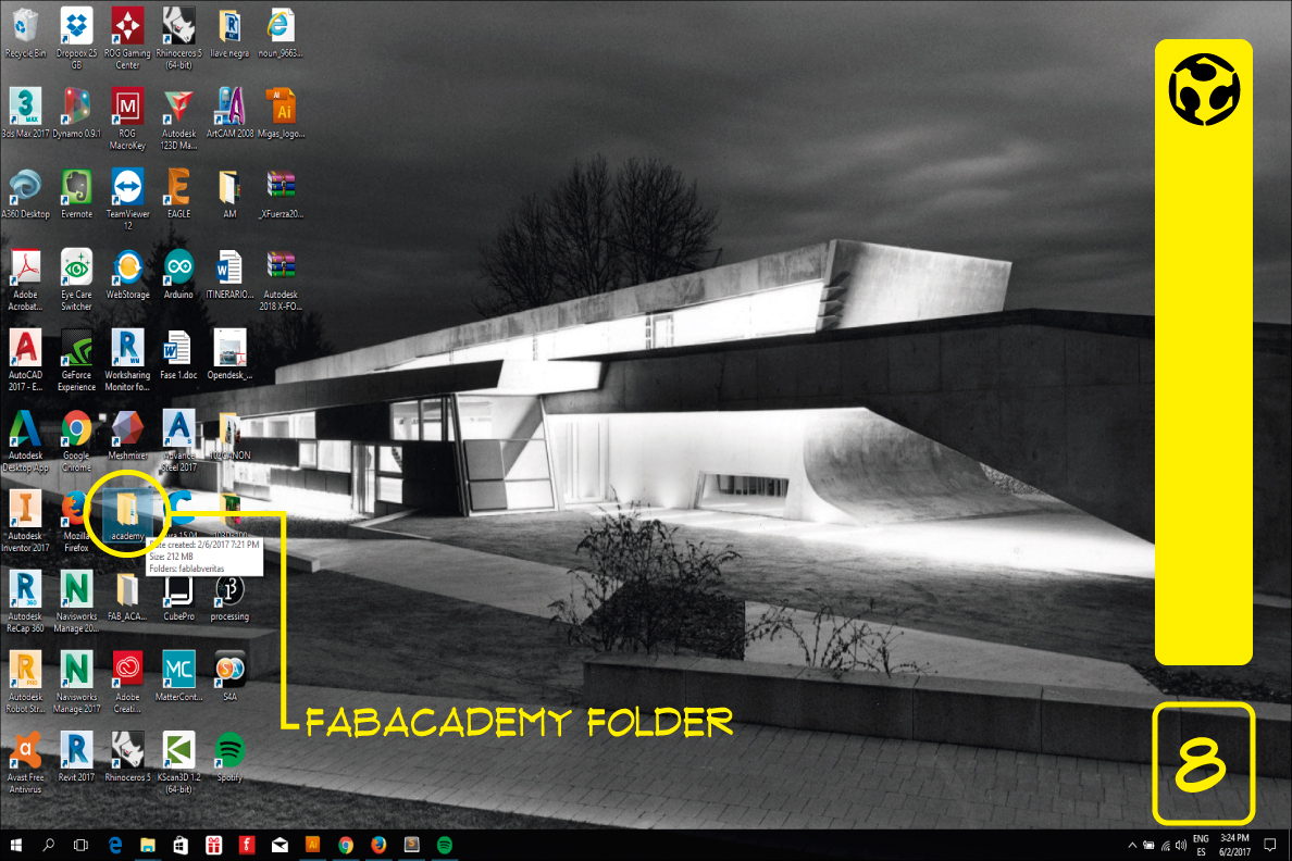 8. Create a folder named "fabacademy" on the location you prefer.