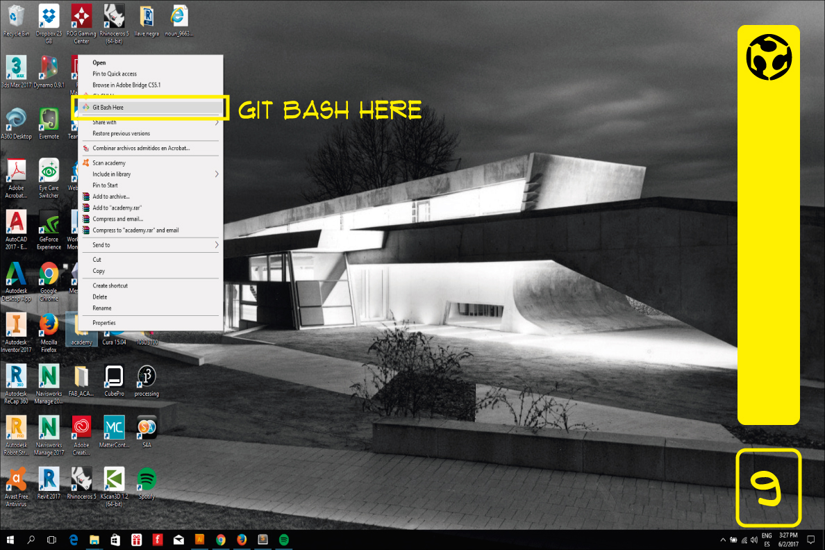 9. Right click on it and select "Git Bash Here". A command line window will appears.