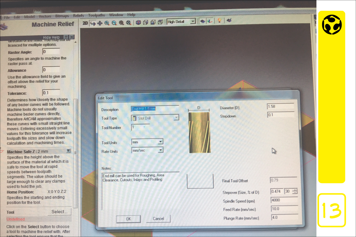 13. Edit the tool for the machine relief.